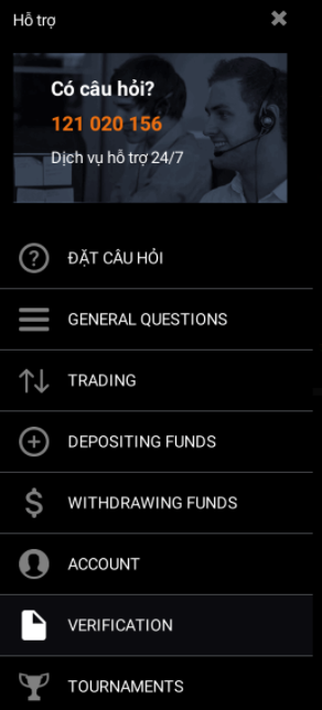 Nhờ dịch vụ hỗ trợ, người dùng có thể giải quyết mọi vấn đề kỹ thuật bất kỳ lúc nào vì nhóm hỗ trợ luôn sẵn sàng hỗ trợ bằng nhiều ngôn ngữ khác nhau. Trách nhiệm như vậy của các nhà phát triển nói lên độ tin cậy và an toàn của nhà môi giới này. Nhóm hỗ trợ khách hàng không chỉ cố gắng giúp giải quyết vấn đề đã phát sinh mà còn ngăn chặn sự cố tiếp tục xảy ra bằng cách thu thập thông tin từ người dùng trên khắp thế giới.