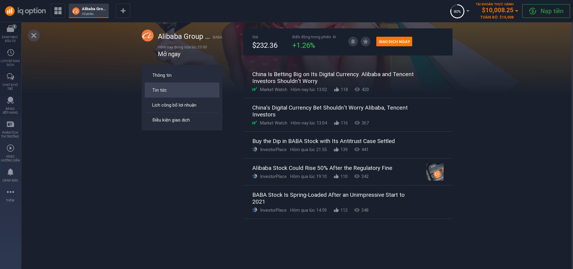 IQ Option là một nền tảng giao dịch được rất nhiều người trên thế giới tin dùng, bao gồm cả Việt Nam. Đây là một nền tảng đáng tin cậy và được đánh giá cao với những tính năng và công cụ đa dạng giúp các nhà đầu tư tham gia vào thị trường tài chính một cách dễ dàng và hiệu quả. Với IQ Option, bạn có thể giao dịch các loại tài sản như ngoại hối, chứng khoán, tiền điện tử và hàng hóa. Bên cạnh đó, nền tảng cung cấp một loạt các công cụ phân tích, đồ thị và các tài liệu giáo dục hữu ích để giúp bạn nắm bắt cơ hội đầu tư và đạt được thành công. IQ Option là một sự lựa chọn tuyệt vời cho những ai quan tâm đến giao dịch tài chính và muốn tìm kiếm một nền tảng giao dịch đáng tin cậy và tiện ích.