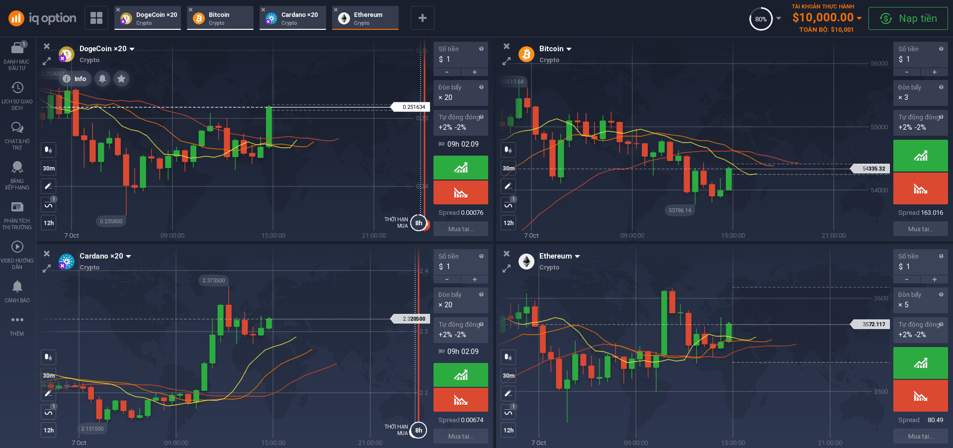 IQ Option là nhà môi giới đã cung cấp quyền truy cập vào giao dịch trực tuyến thông qua một nền tảng chuyên dụng từ năm 2013. Cho đến nay, hơn 50 triệu tài khoản nhà giao dịch đã được đăng ký tại các quốc gia trên thế giới. Để hoàn thành thành công các giao dịch mua và bán tài sản tài chính, không chỉ cần lựa chọn chính xác các công cụ tài chính mà còn phải chuẩn bị từ khía cạnh kỹ thuật của quy trình. Các nhà đầu tư và nhà giao dịch có thể nhanh chóng và dễ dàng tìm thấy tài sản cần thiết, nhận thông tin về tài sản đó và thực hiện giao dịch mà không cần nhấp chuột không cần thiết. Trong bài đánh giá IQ Option này, bạn sẽ tìm hiểu cách làm việc trên nền tảng của nhà môi giới và những tính năng mà nền tảng này cung cấp. Và bạn cũng sẽ có cơ hội dùng thử tài khoản demo miễn phí hoàn toàn miễn phí.